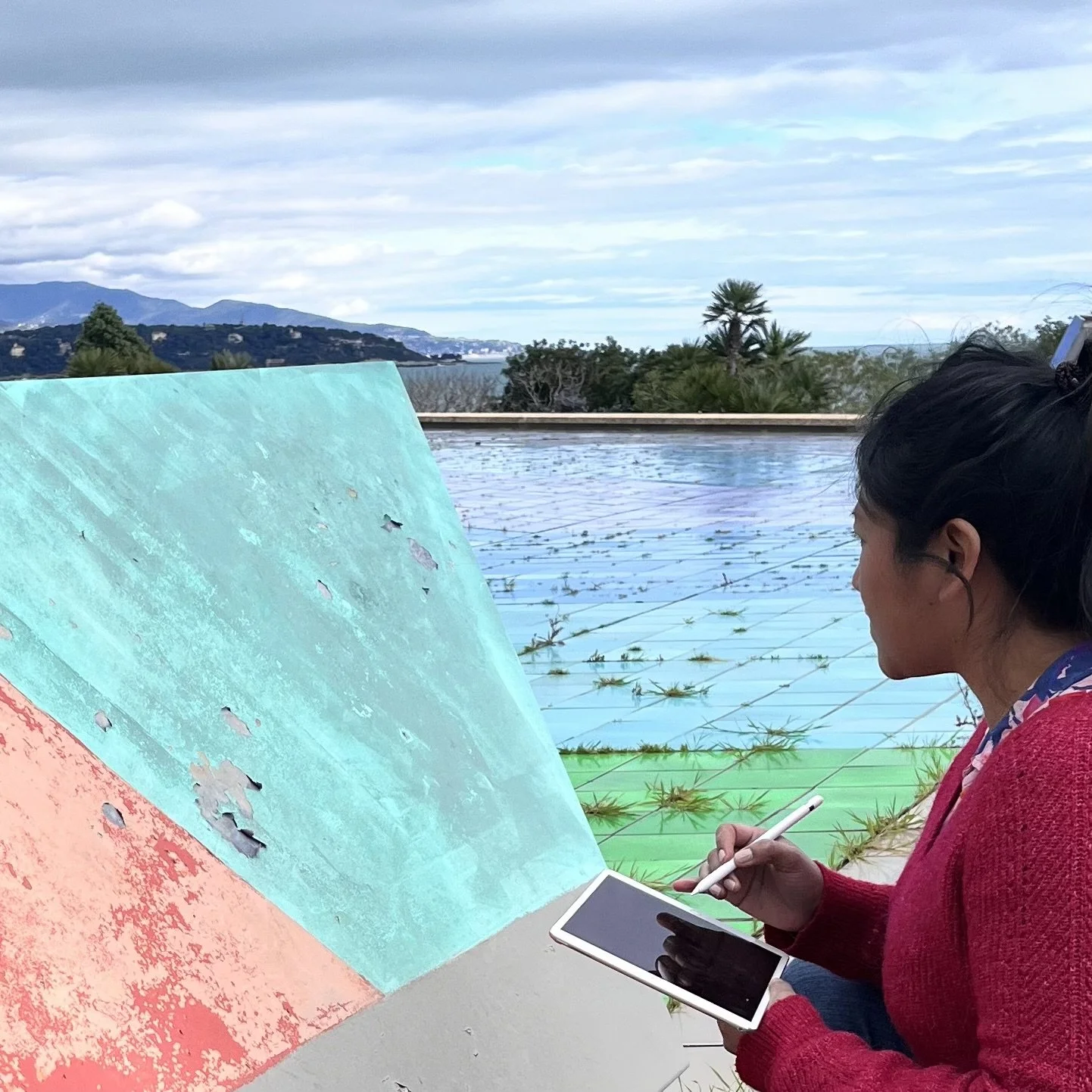 Déplacement à Monaco ce printemps, pour travailler sur Hexagrace : œuvre monumentale de Victor Vasarely réalisée en 1979 sur le toit de l’auditorium Rainier III. Groupement pluridisciplinaire de conservateurs-restaurateurs de spécialité complémentaires (céramique, métal, peinture) dont la mission était de réaliser une étude : bilan sanitaire de l’œuvre, relevé des altérations sur tablette, diagnostic, pronostic et préconisations de traitement de conservation-restauration à mener prochainement.